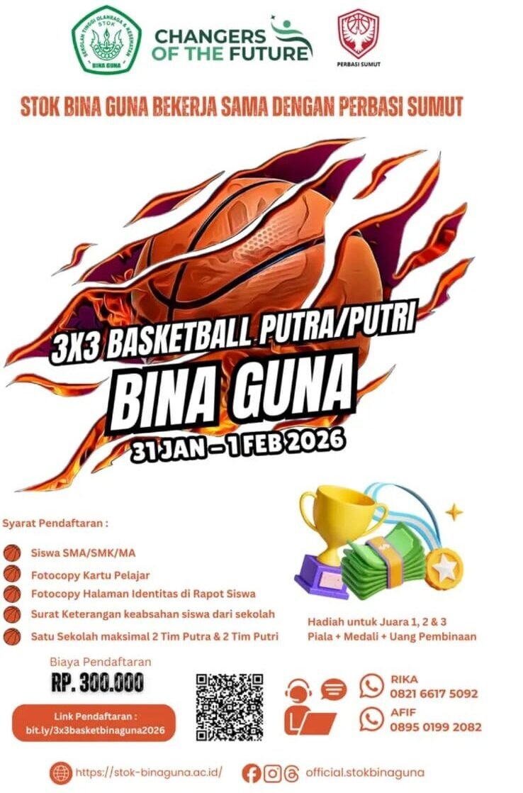 Ketua STOK Bina Guna Medan dr.Hj.Liliana Puspa Sari, Mkes mengatakan, Sekolah Tinggi olahraga dan Kesehatan yang memiliki misi meningkatkan tata kelola yang baik, rencananya akan melakukan kegiatan olahraga yaitu Turnamen bola basket three on three atau 3×3 pada tanggal 31 Januari s/d 01 Februari 2026.