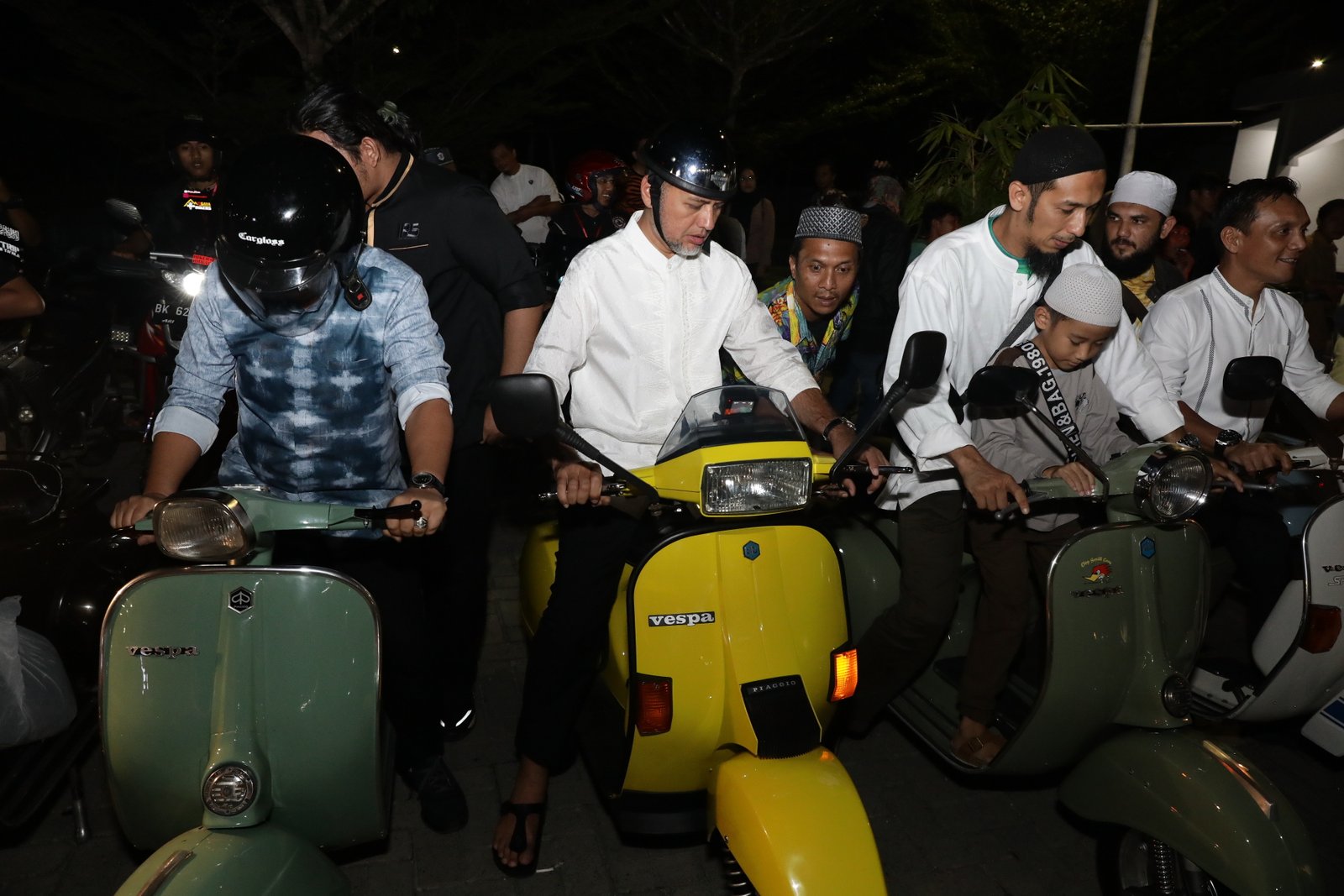 Bersama anak-anak dari komunitas Vespa, Wakil Gubernur (Wagub) Sumatera Utara (Sumut) Musa Rajekshah berangkat naik Vespa menghadiri Konser Langit Ustaz Hanan Attaki di Lapangan Sepak Bola Persatuan Banten Tanjungmorawa, Kabupaten Deliserdang, Jumat (17/6) malam.